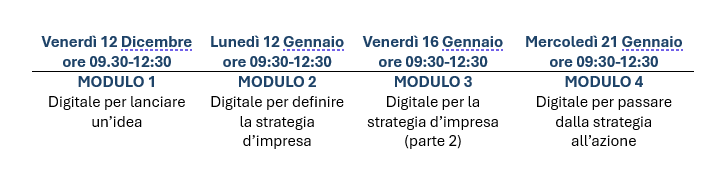 La metodologia formativa segue la logica Analisi → Strategia → Azione, combinando momenti teorici, esercitazioni guidate e attività interattive. Al termine del percorso, le partecipanti avranno acquisito una visione più consapevole del ruolo del digitale nei processi di avvio d’impresa e un primo mindset imprenditoriale digital-oriented.